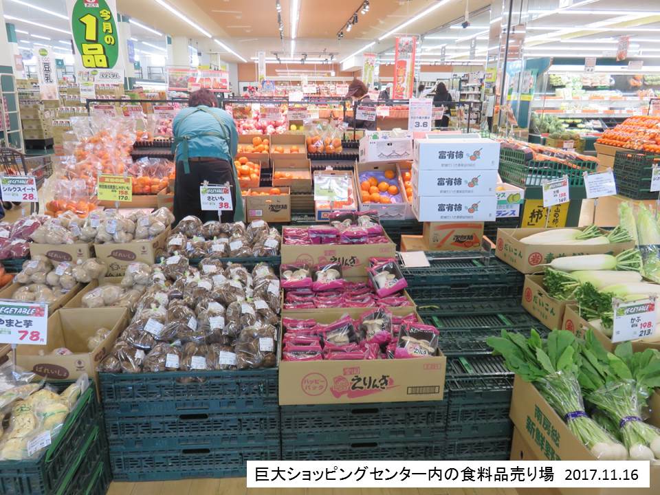 館山市全体の普通の地図もほしかったので、近くの大きなショッピングセンター内の本屋にも寄りました。食料品売り場を通ったら、各種野菜・果物の品揃えの多さに驚きました。あちこちに出店しているチェーン店だそうですが、こんな大きなショッピングセンターが田舎町にできたら、昔ながらの小さな八百屋や肉屋のような商店はとても競争できないなと思いました。