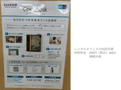 地下鉄霞が関構内の通路にはレンタルオフィスが2つ置いてありました。私は初めて見ましたが、使用料は275円(税込)/15分と書いてありました。